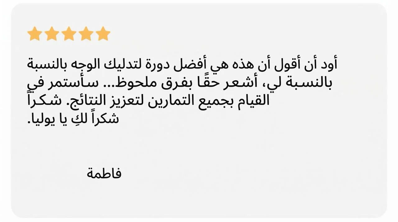 تعتمد التمارين فقط على اليدين، التنفّس وتقنيات التثبيت — بطريقة آمنة وطبيعية ومتوافقة مع تشريح الوجه.